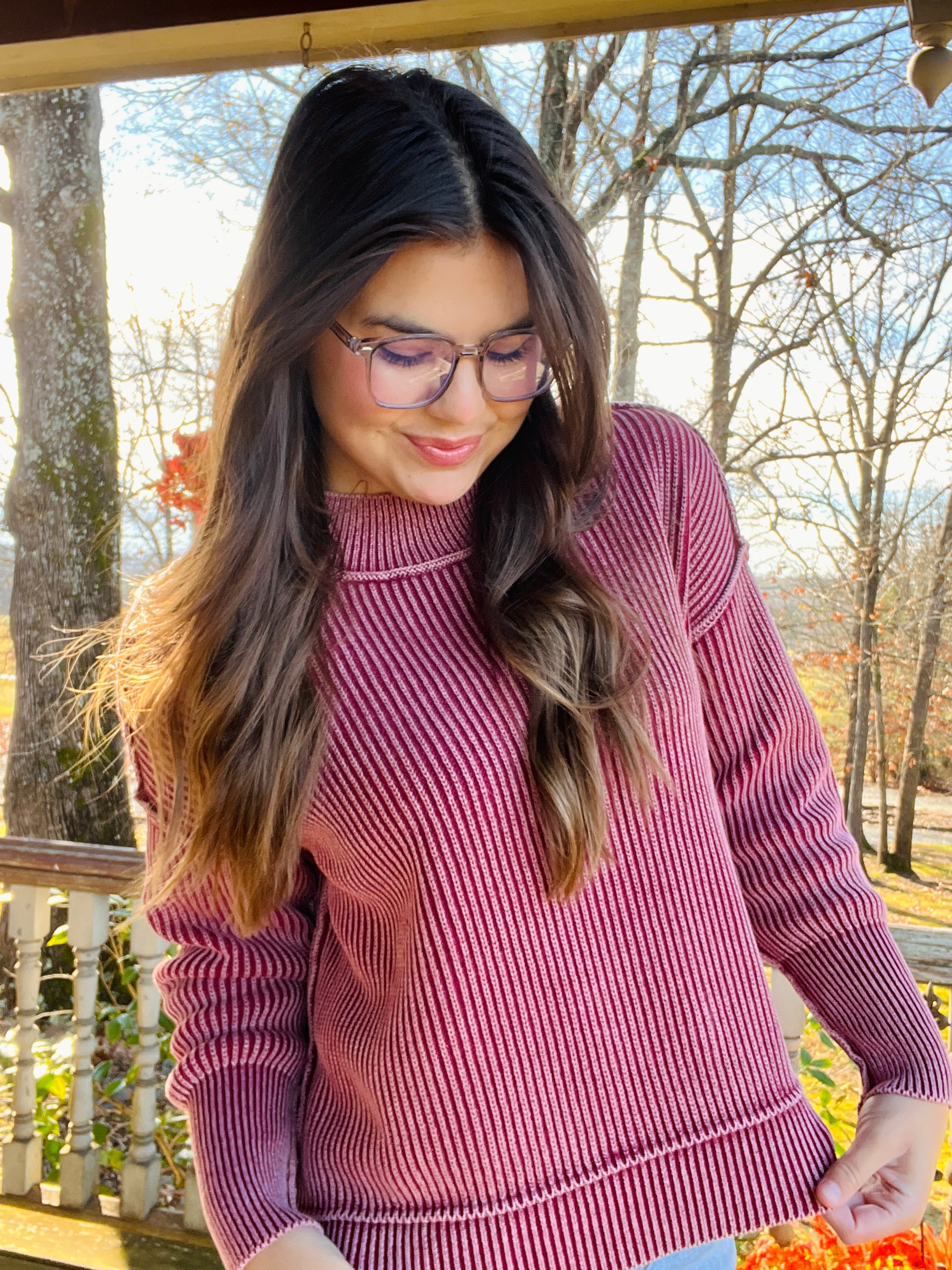 Cabernet Washed side slit oversized sweater