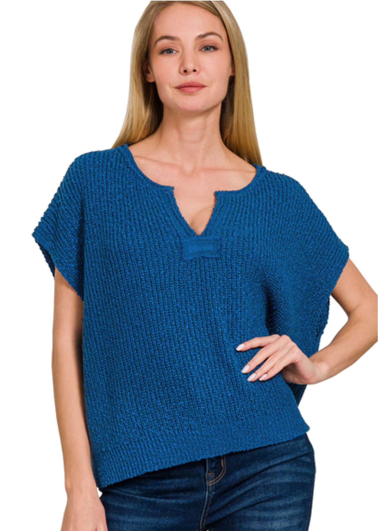 Classic Blue Short Sleeve Rolled Patch Sweater