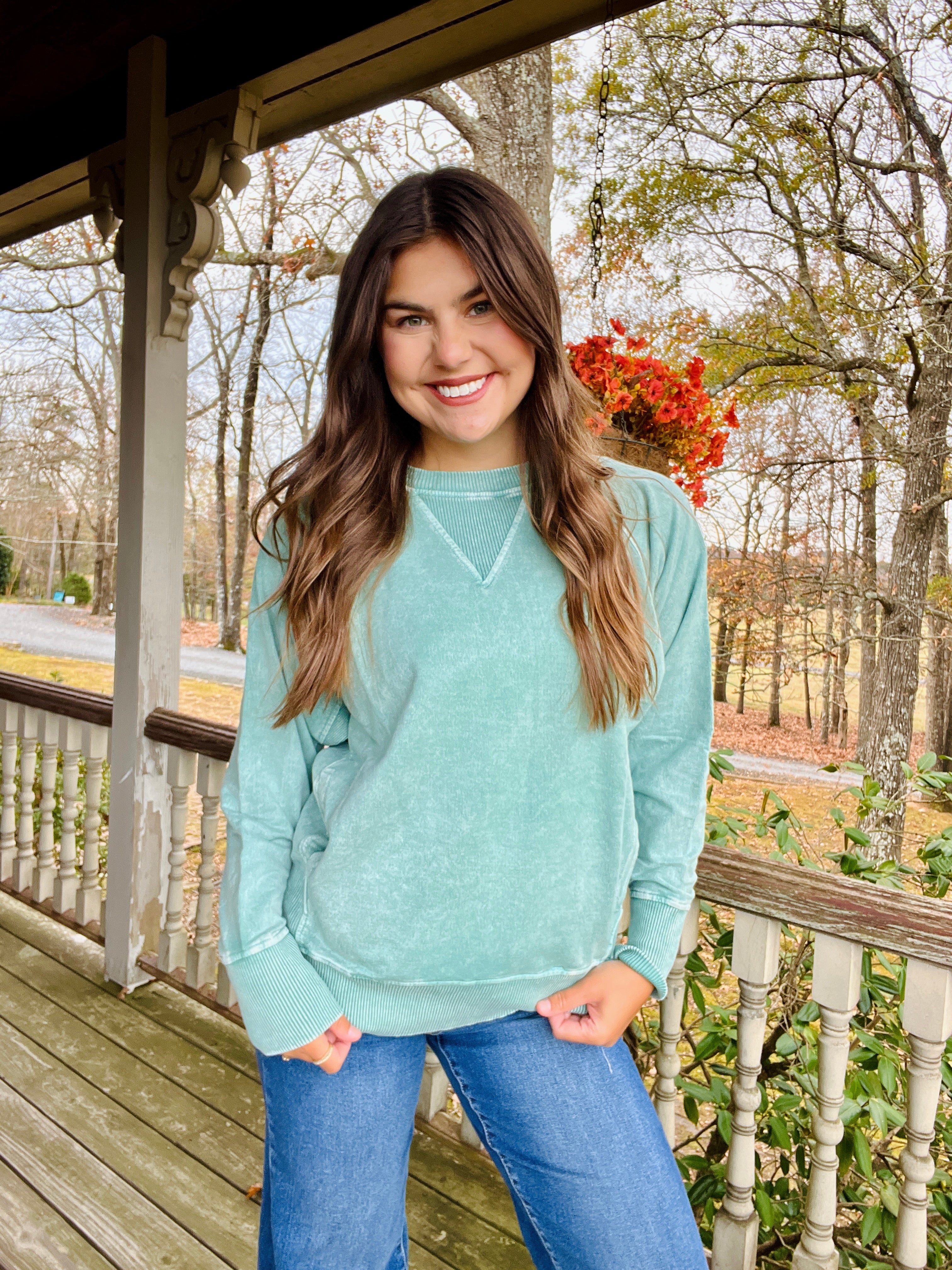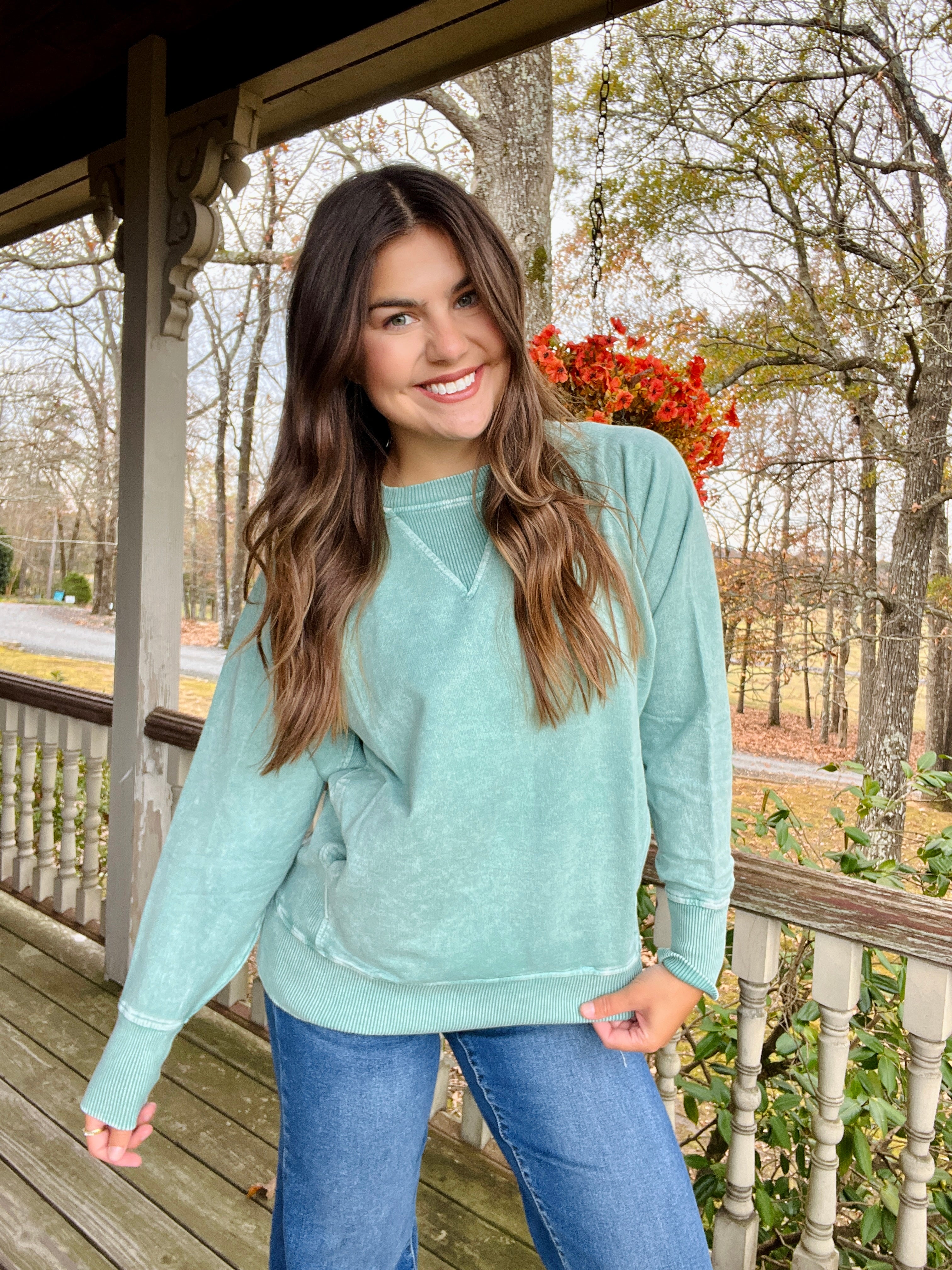 HALO-WASHED FRENCH TERRY ROUND-NECK PULLOVER