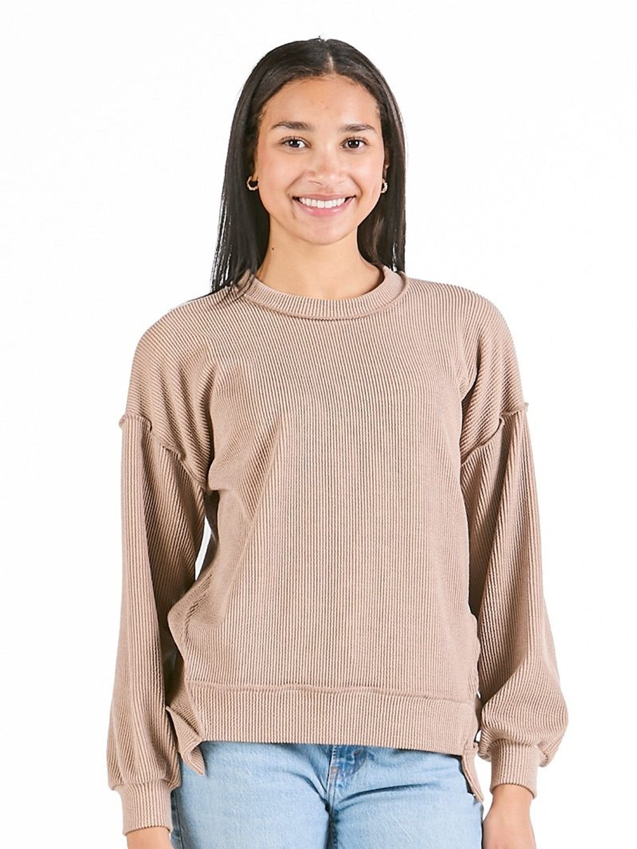 The Amber Top is an oversized shilouette with forward side seams and and dropped hem. Featuring crew neckline and balloon sleeves with cuff. Made of  20% rayon 75% polyester 5% spandex.
