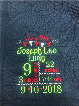 Birth Announcement Baby Quilt-Baby Blanket-Crib Quilt-Baby Gift-Embroidered Baby Quilt