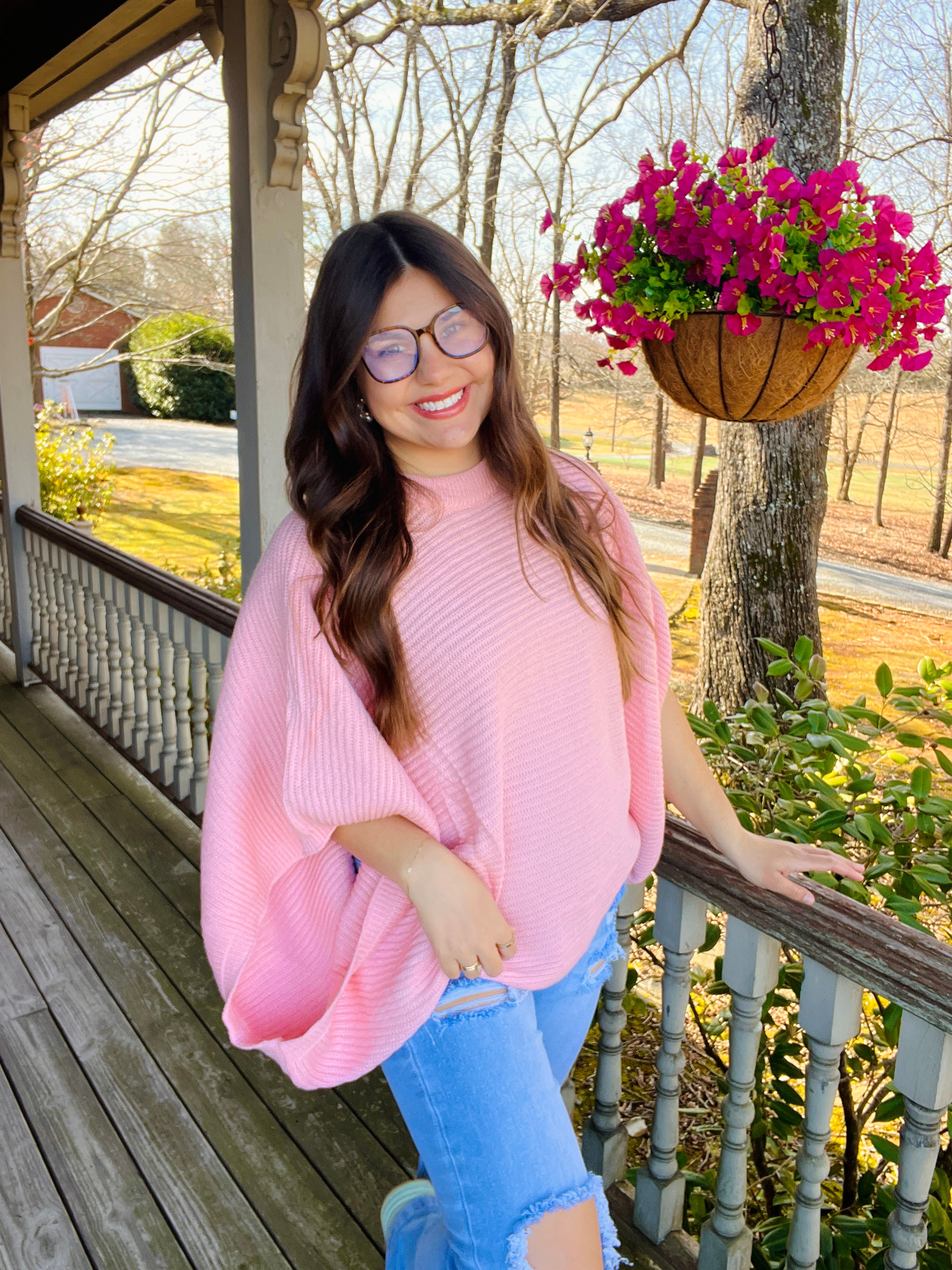 Stay warm and fashionable in our popular MEG Pullover Ponchos. Features long arm holes for a flowy poncho feel, yet in a cute knit sweater. This stylish poncho sweater is designed to keep even the chilliest weather at bay. Perfect for a chic, cozy Spring look.