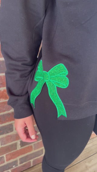We are loving this new colts appliqué crewneck! It features the green glitter colts and side slit bows. It is on a standard gildan crewneck. Message us on facebook or instagram if you are interest in other customs!