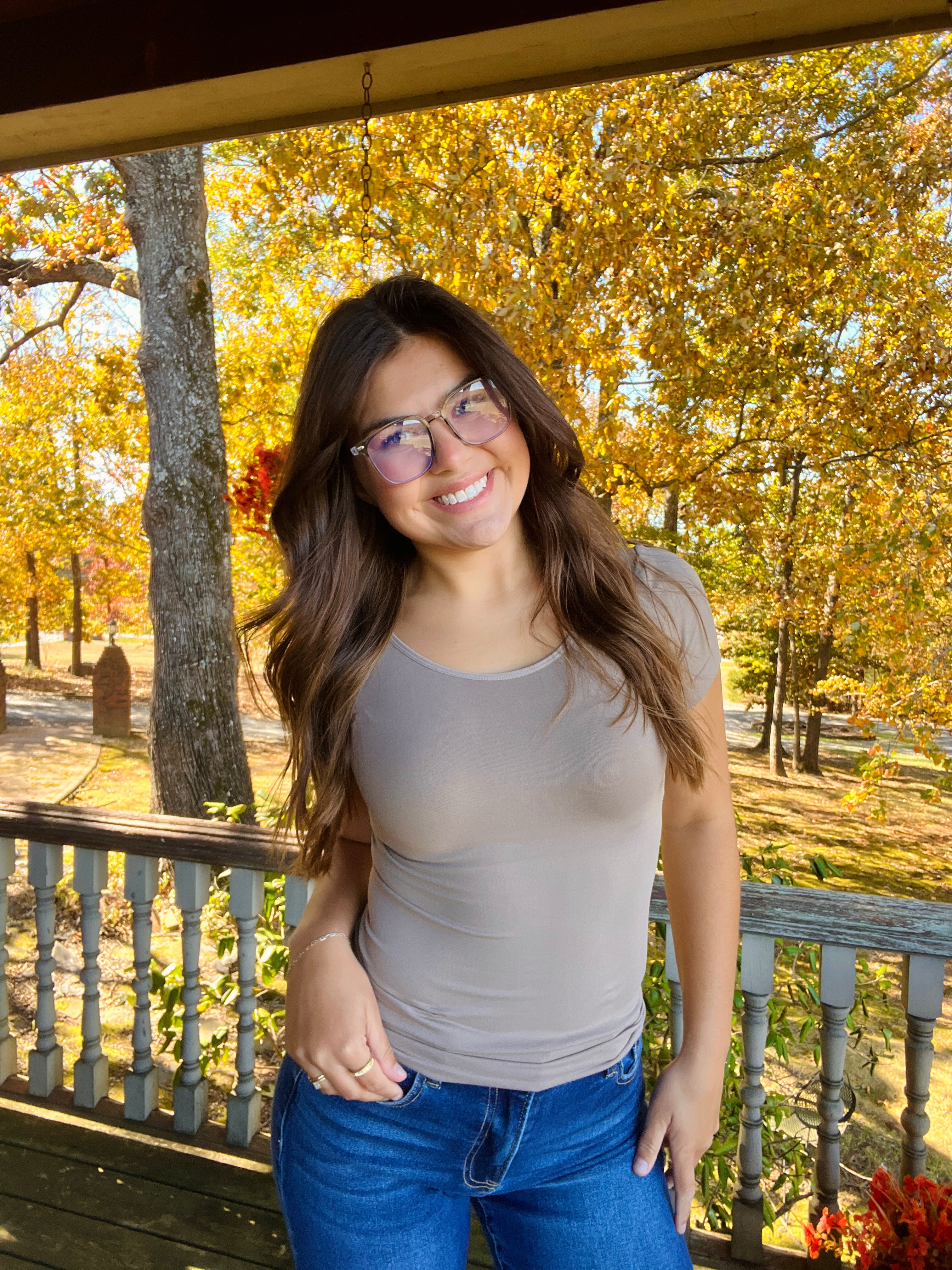 Light Mocha Women’s Seamless Reversible V-Neck Short Sleeve Top
