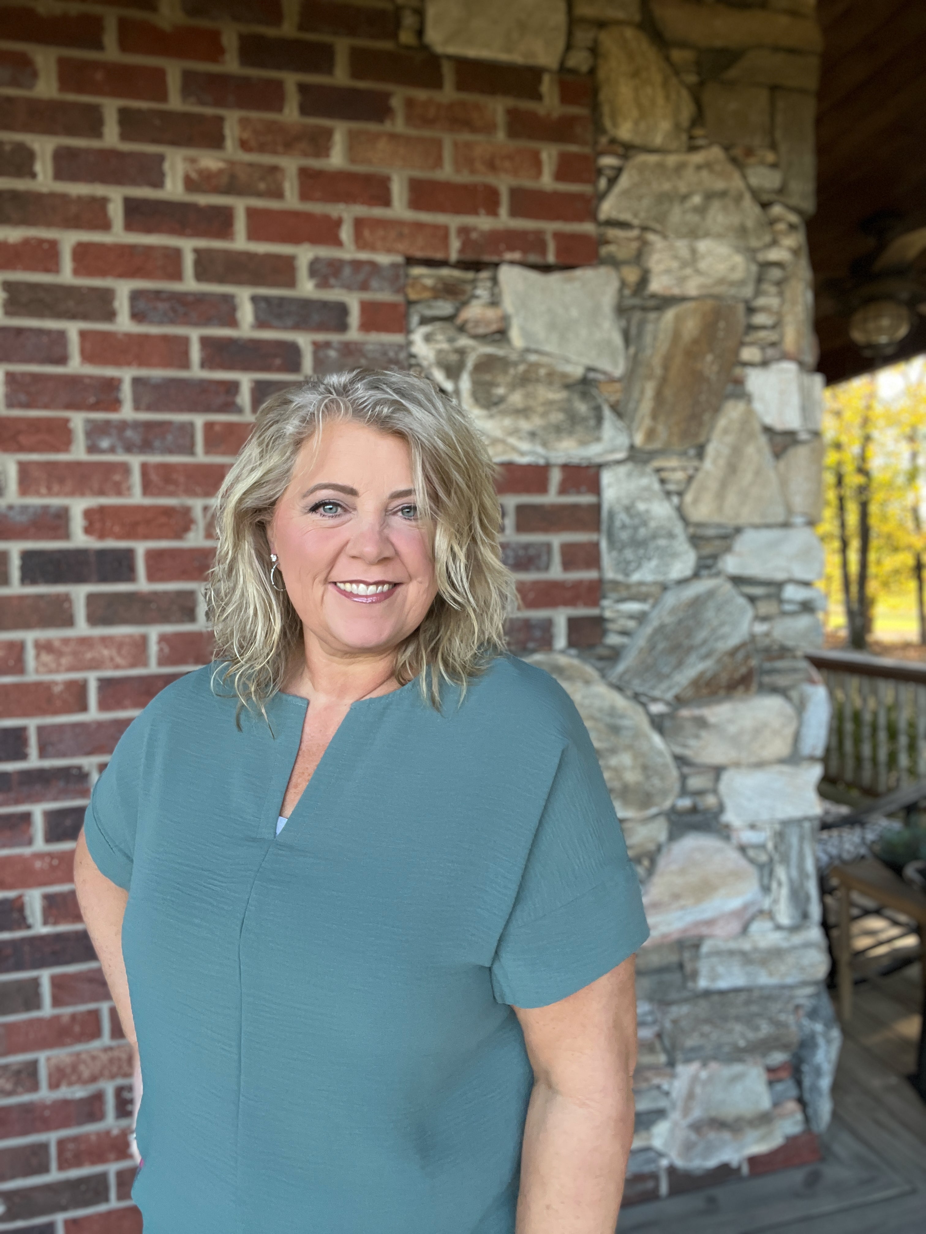 This woven airflow top features a split neck and short sleeves for a breezy, comfortable fit. It measures approximately 29" in total length at the front and has a bust size of about 45" (based on a small). Please note that colors may appear slightly different depending on your monitor settings.
