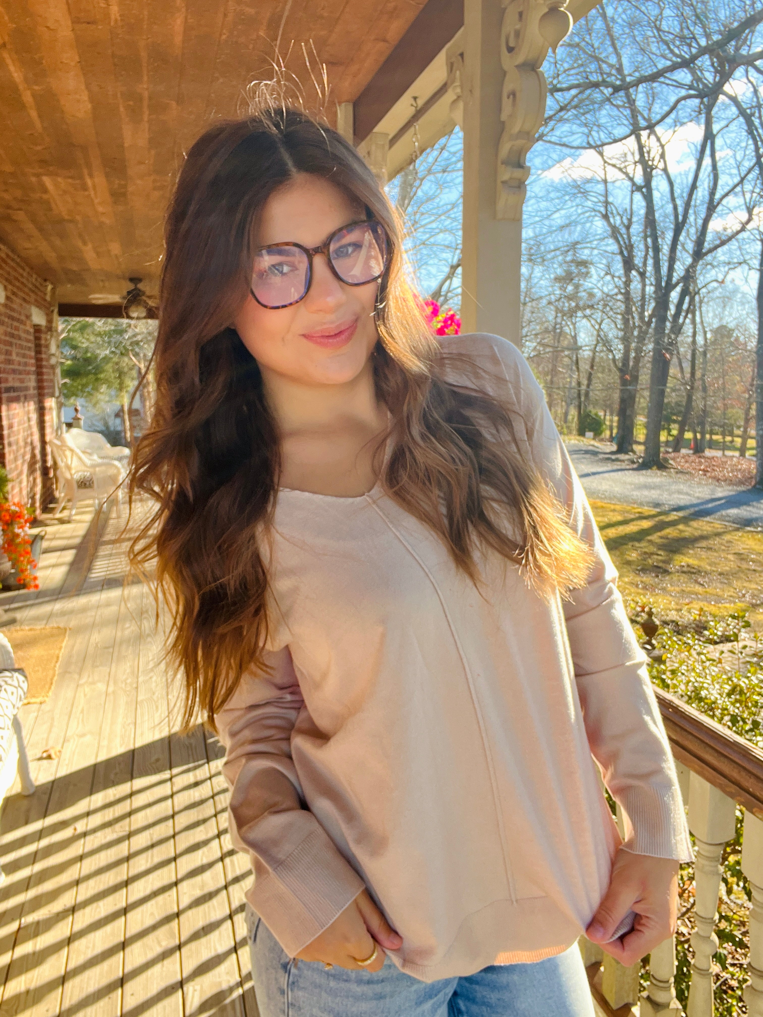 This long-sleeve V-neck top is a wardrobe essential, designed with comfort and style in mind. Made from a soft, stretchy fabric, it feels gentle against the skin and offers ease of movement throughout the day. Its lightweight design makes it ideal for layering under jackets or cardigans during cooler weather, yet it’s equally perfect for wearing on its own during milder seasons. The relaxed, loose fit provides a flattering silhouette, while the subtle side slit detail adds a touch of modern charm and extra flexibility. A versatile piece that effortlessly transitions from casual to chic.