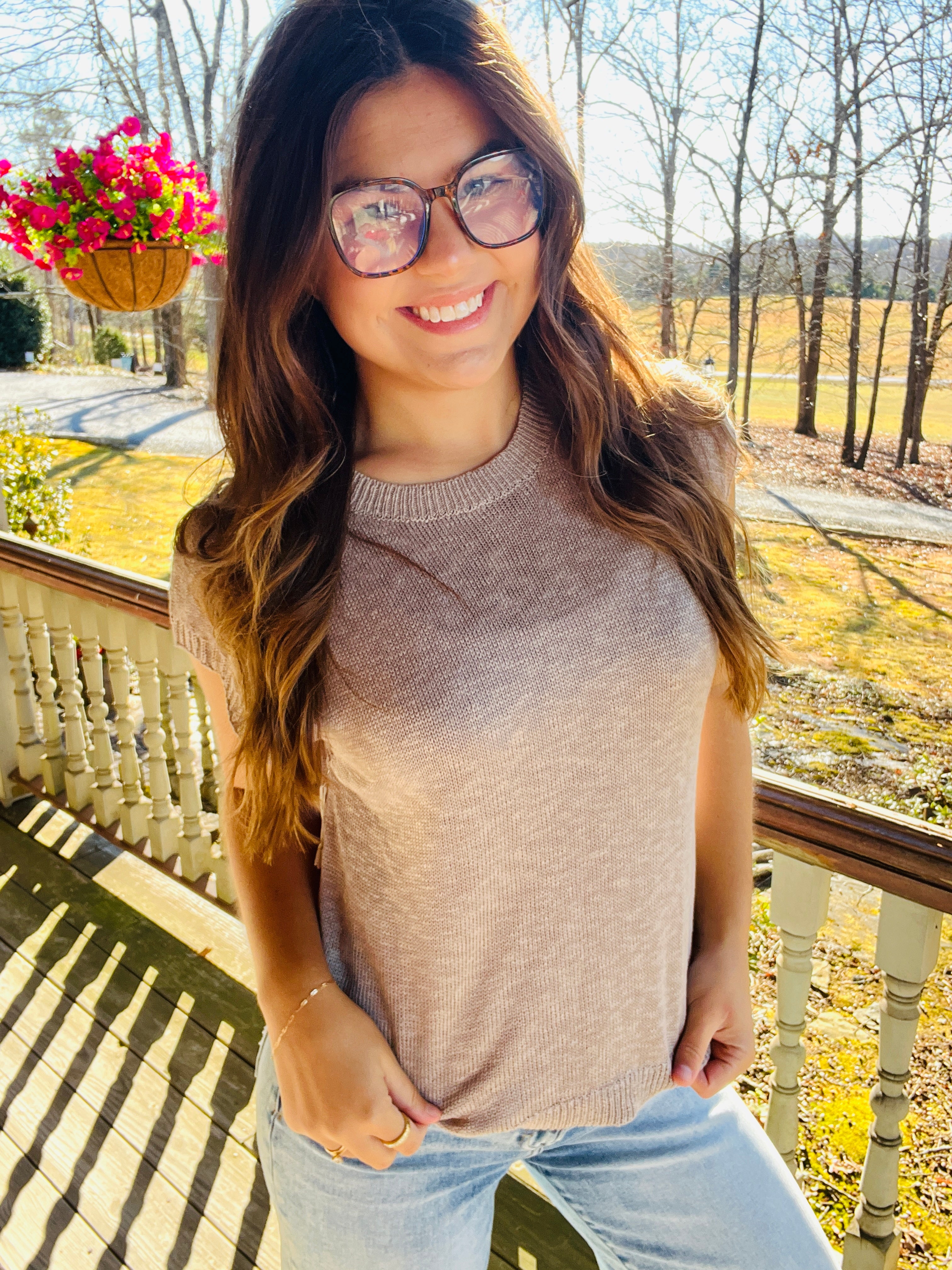 Mocha Loose Fit Sleeveless Ribbed Knit Crew Neck Top