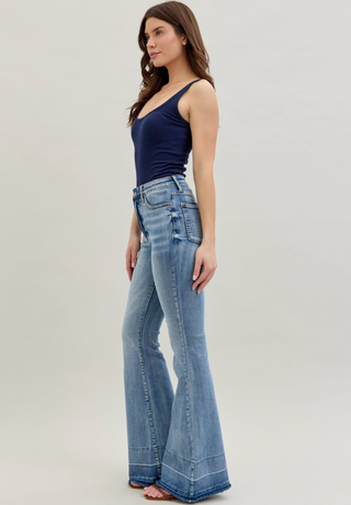 Judy Blue Full Size Mid Rise Slim Bootcut Tummy Control Release Hem Jeans Plus Size
